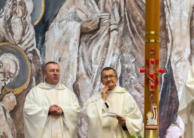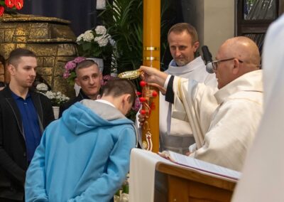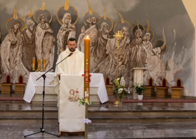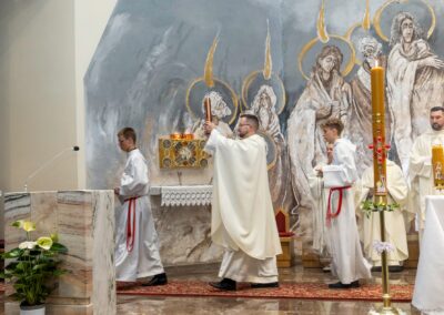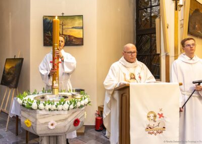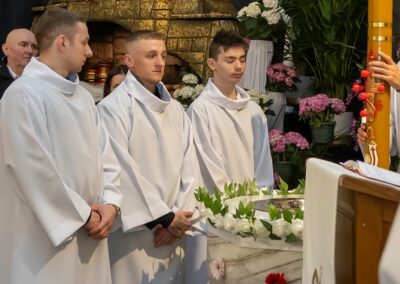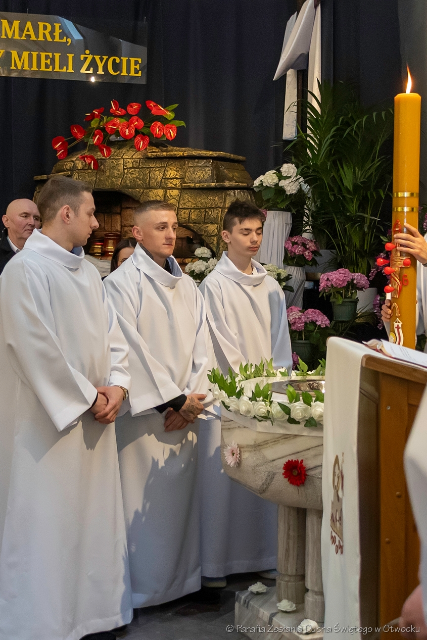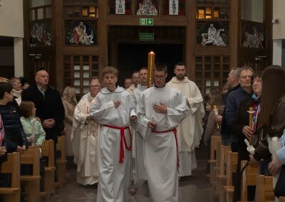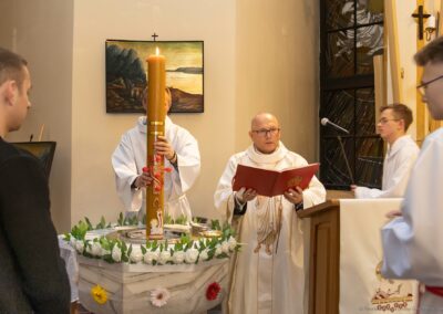 Szczególną radością naszej wspólnoty jest to, że podczas tej liturgii trzech dorosłych mężczyzn przyjęło sakrament Chrztu świętego i bierzmowania, a następnie po raz pierwszy przystąpiło do Komunii świętej. Przez te sakramenty zostali oni w pełni włączeni do Kościoła i umocnieni darami Ducha Świętego, aby żyć jako świadkowie Zmartwychwstałego Pana.